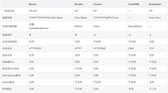 如下注册中心对比图。