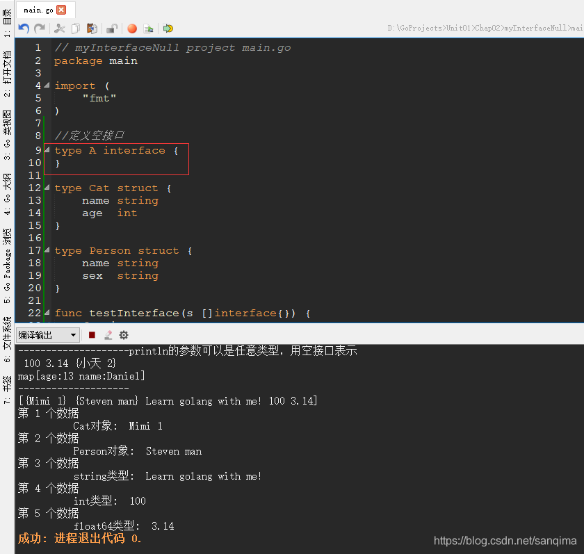 - ⽤空接⼝表示任意数据类型,类似于java中的object。