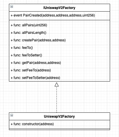 UniswapV2工厂合约 UniswapV2Factory,继承于IUniswapV2Factory,如图(1)所示,用于创建配对合约。