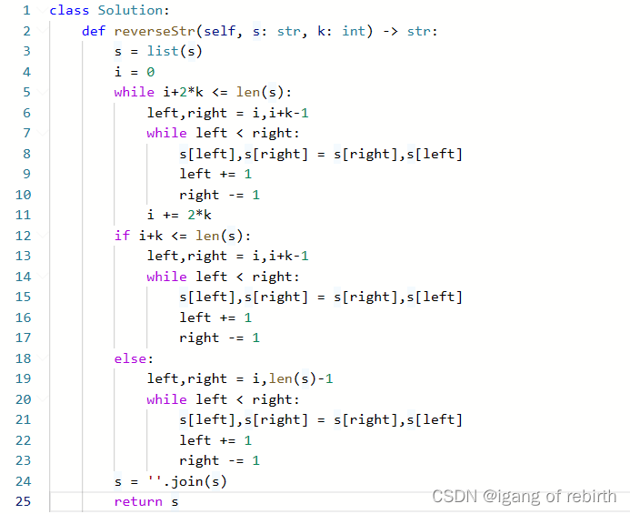 思路:反转的步骤其实是一样的,但是只是反转有了限制条件,只需要有一个i,让其2k,2k跳即可。