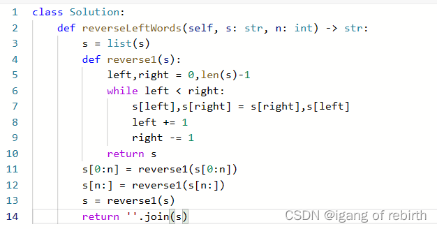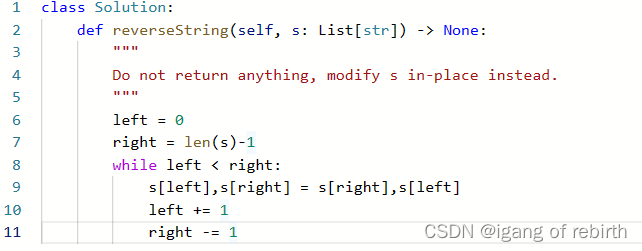 思路:双指针,左指针left和右指针right,一直交换它们两个的值,直到left==right跳出循环即可。