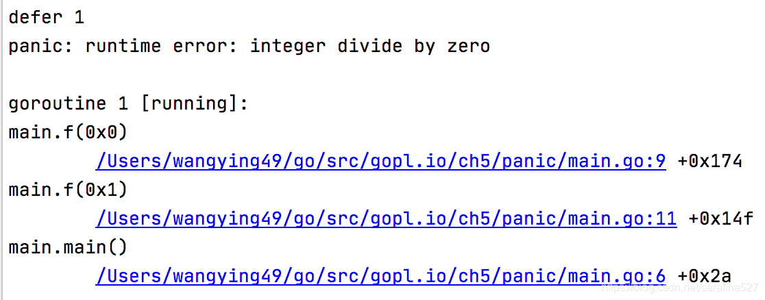 java在遇到throw了RuntimeException时,会执行outer的finally块,然后线程终止,一般退出时会打印异常堆栈信息到标准错误。Go的panic机制也是类似的,panic异常发生,程序会中断运行,并立即执行在该goroutine中被延迟的函数(defer 机制),程序崩溃并输出日志信息,日志信息包括panic value和函数调用的堆栈跟踪信息。