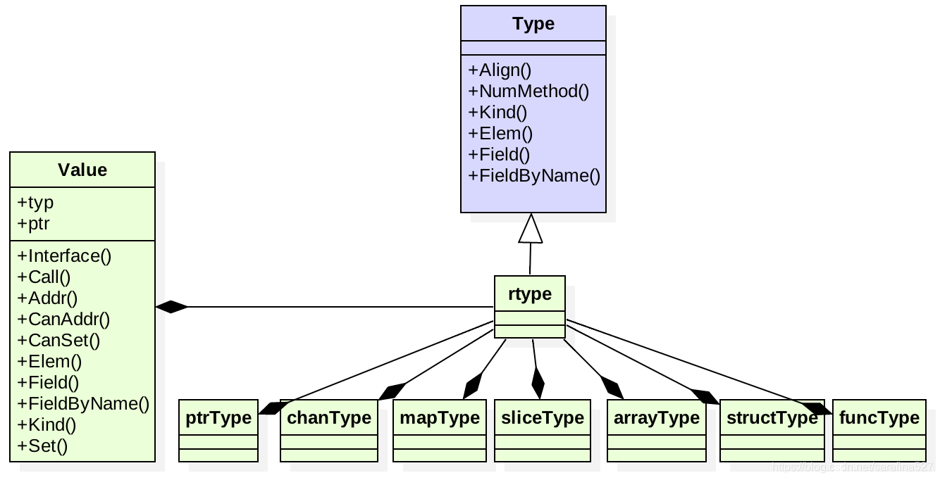 reflect包包含一个接口Type和一个结构体Value常用于这种场景,可以通过这两个获取底层字段、调用方法、修改字段等等功能,能够实现Java反射机制的类似功能。Value组合了rtype,rtype实现了Type,所以Value包含了Type的所有方法。