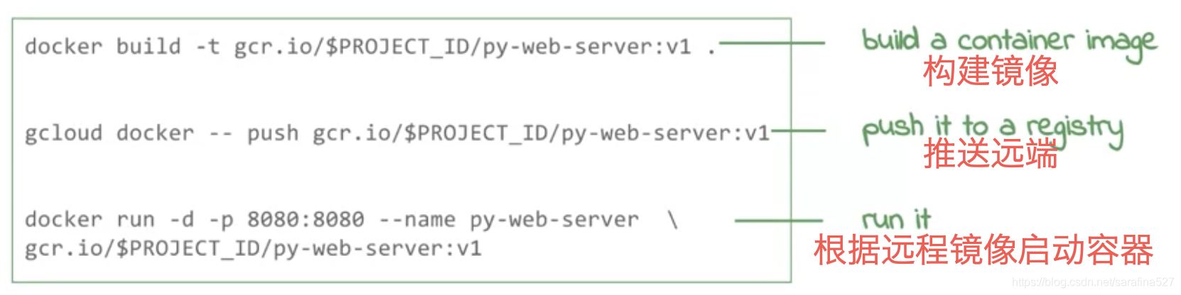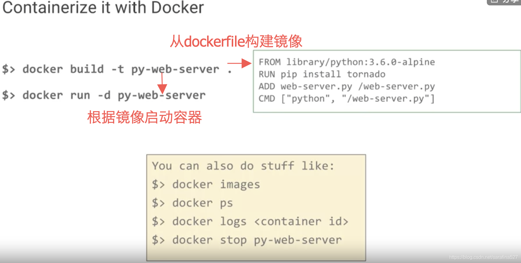 常用流程就是1.编写dockerfile,2.build生成一个镜像,(将镜像push到仓库 ,拉取镜像),3.启动容器。