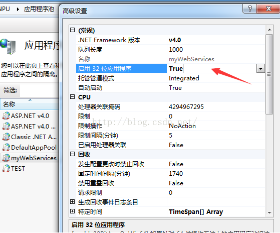 [应用程序池]-高级设置 修改这个即可。