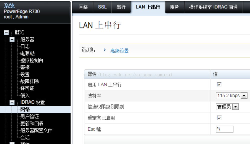 启用IPMI串行,并设好波特率。接下来设置LAN上串行: