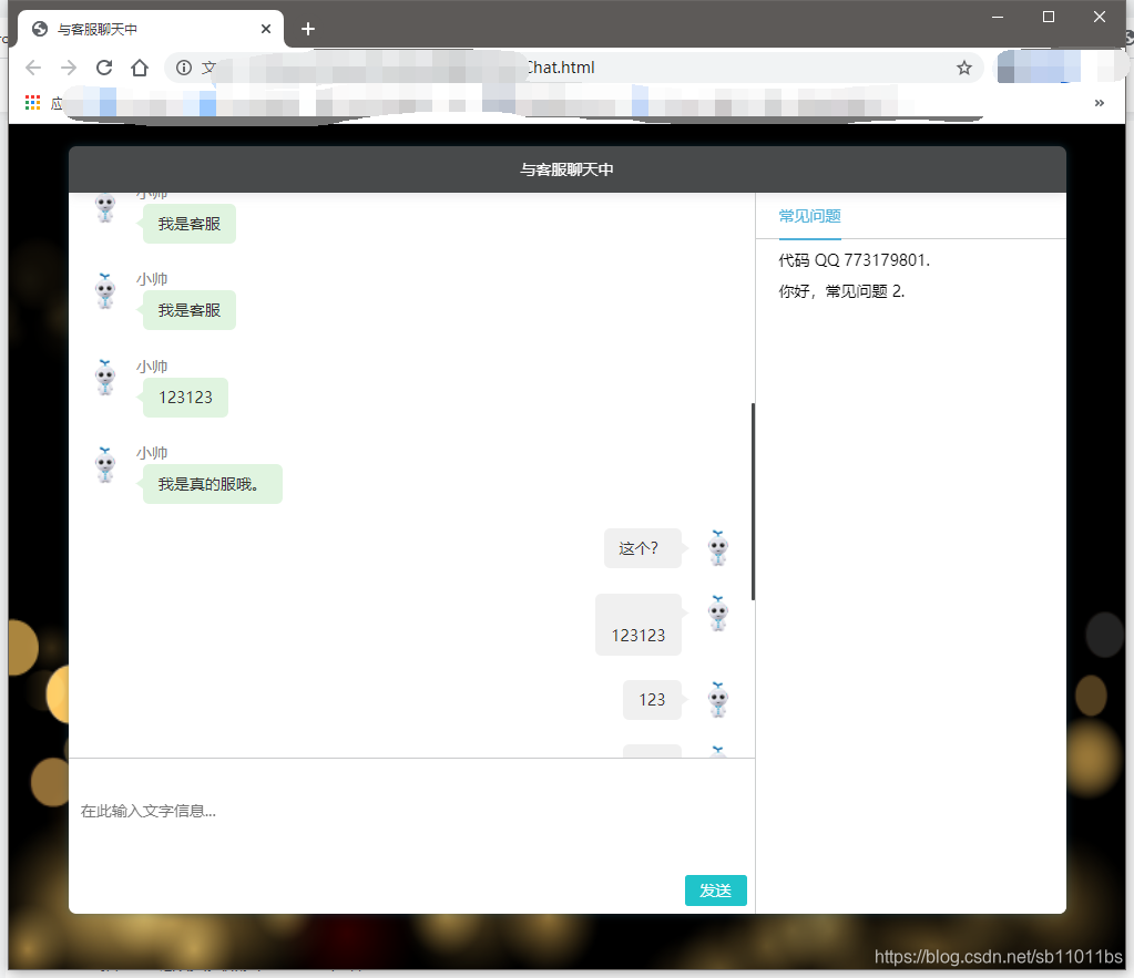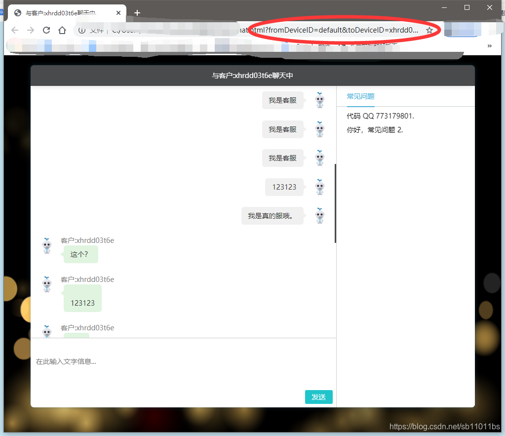 当点击发送的时候,会将客服的ID与客户的ID 作为聊天框的参数,然后进入聊。