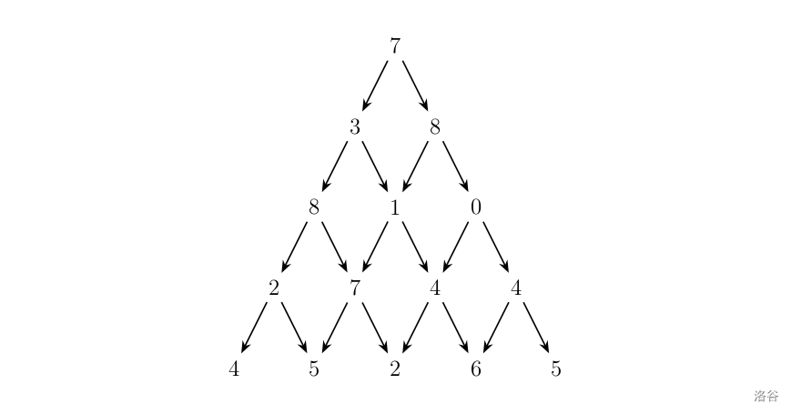 从下往上找两个数哪个更大,最后顶端就是答案。