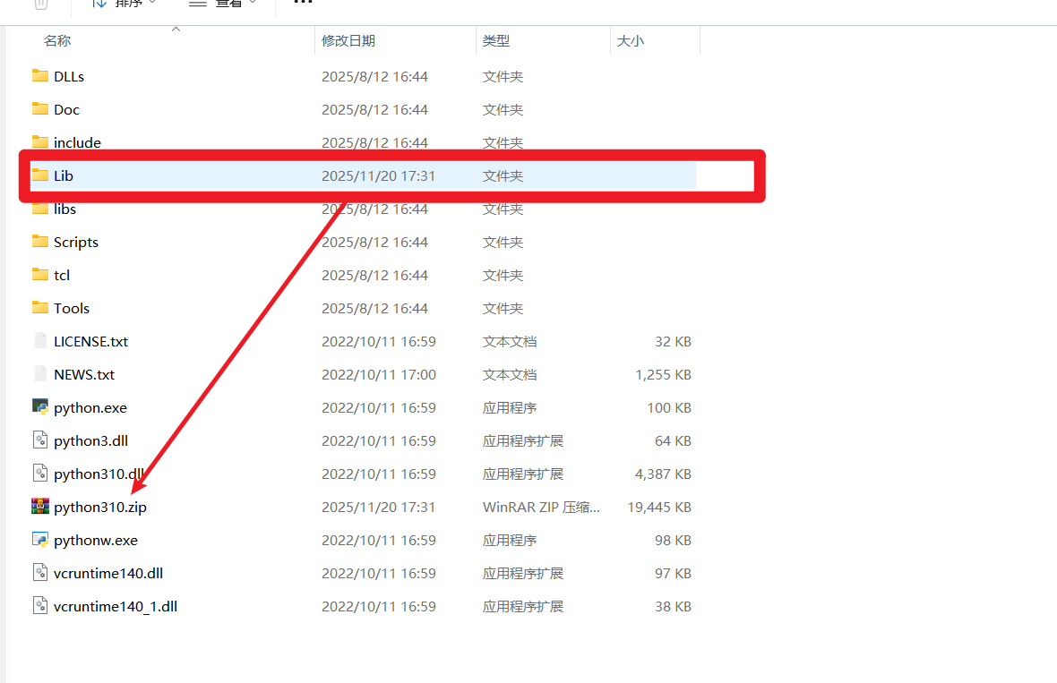 将想更换的python版本的Lib文件夹内所有内容压缩
