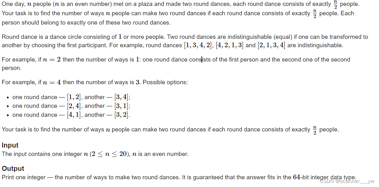 给你一个n,有1-n个数,把这些数两两分成一组的方案数是多少?