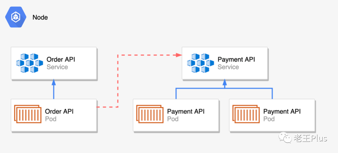 而当其它Pod需要与这个支付API的Pod通讯时,实际不会与支付API的一个Pod直接联系,而是将请求发给服务,然后由服务将请求传递给某一个Pod的实例。