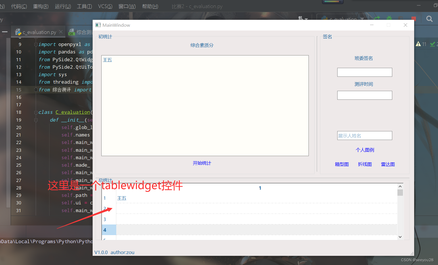 有了qt界面后,我们要获取到tablewidget控件里面的内容 代码就是一句,跟点击按钮一样连接到函数