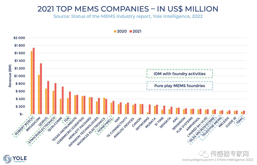 ▲2022年MEMS Top30 企业名单,来源:Yole