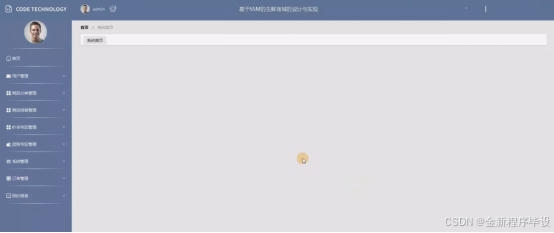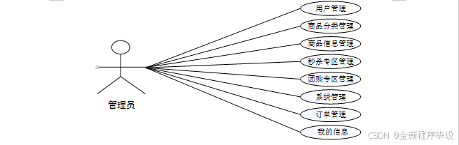 管理员进入主页面,主要功能包括对用户管理、商品分类管理、商品信息管理、秒杀专区管理、团购专区管理、系统管理、订单管理、 我的信息等进行操作。管理员主页面如图5-10所示: