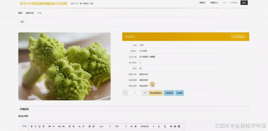 本文将从生鲜商城管理的需求和现状进行分析,使得本系统的设计实现具有可使用的价。做出一个实用性好的生鲜商城系统,使其能满足用户的需求,并可以让用户更方便快捷地购买商品。系统开发目的主要是为了简化生鲜商城的管理,使管理员更好地完成工作,在工作中实现高效快捷的管理效率。