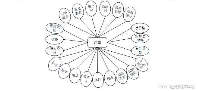 通过对生鲜商城系统的主要功能信息进行规划并分为若干功能实体信息,实体信息将使用E-R图加以表示,本系统的主要E-R实体如下图所示: