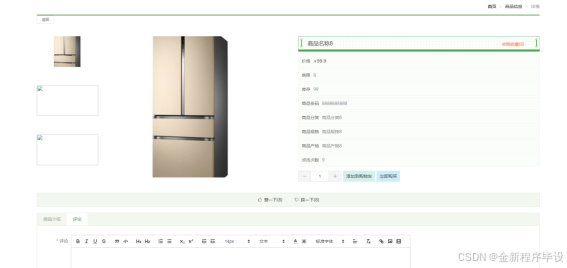在商品信息页面输入商品条码、商品条码、商品名称、商品名称、价格查询,可以查看商品信息等具体信息,还可以点击添加到购物车、立即购买或者收藏、评论等操作,如图5-5所示: