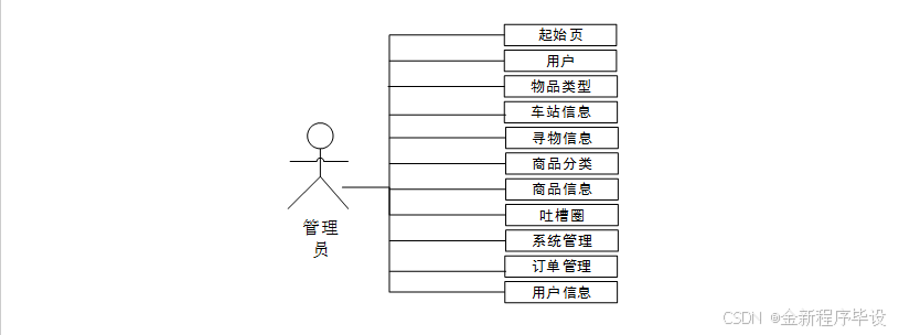 管理员进入系统主页面,主要功能包括对起始页、用户、物品类型、车站信息、寻物信息、商品分类、商品信息、吐槽圈、系统管理、订单管理、用户信息等进行操作。管理员主页面如图5-8所示: