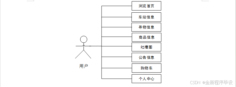 注册账号成功且登录系统后,用户即可进入主页查看首页、车站信息、寻物信息、商品信息、吐槽圈、公告信息、购物车、个人中心,并开始执行业务操作,如图5-1所示: