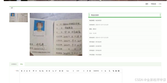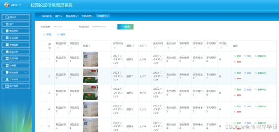 信息发布与管理:用户可以发布寻物启事、商品信息、吐槽帖子等,管理员可以审核和管理这些信息。