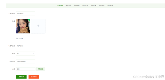 个人中心页面可通过输入修改密码、寻物信息、我的发布、我的订单、我的地址、我的收藏具体信息等操作,如图5-6所示:
