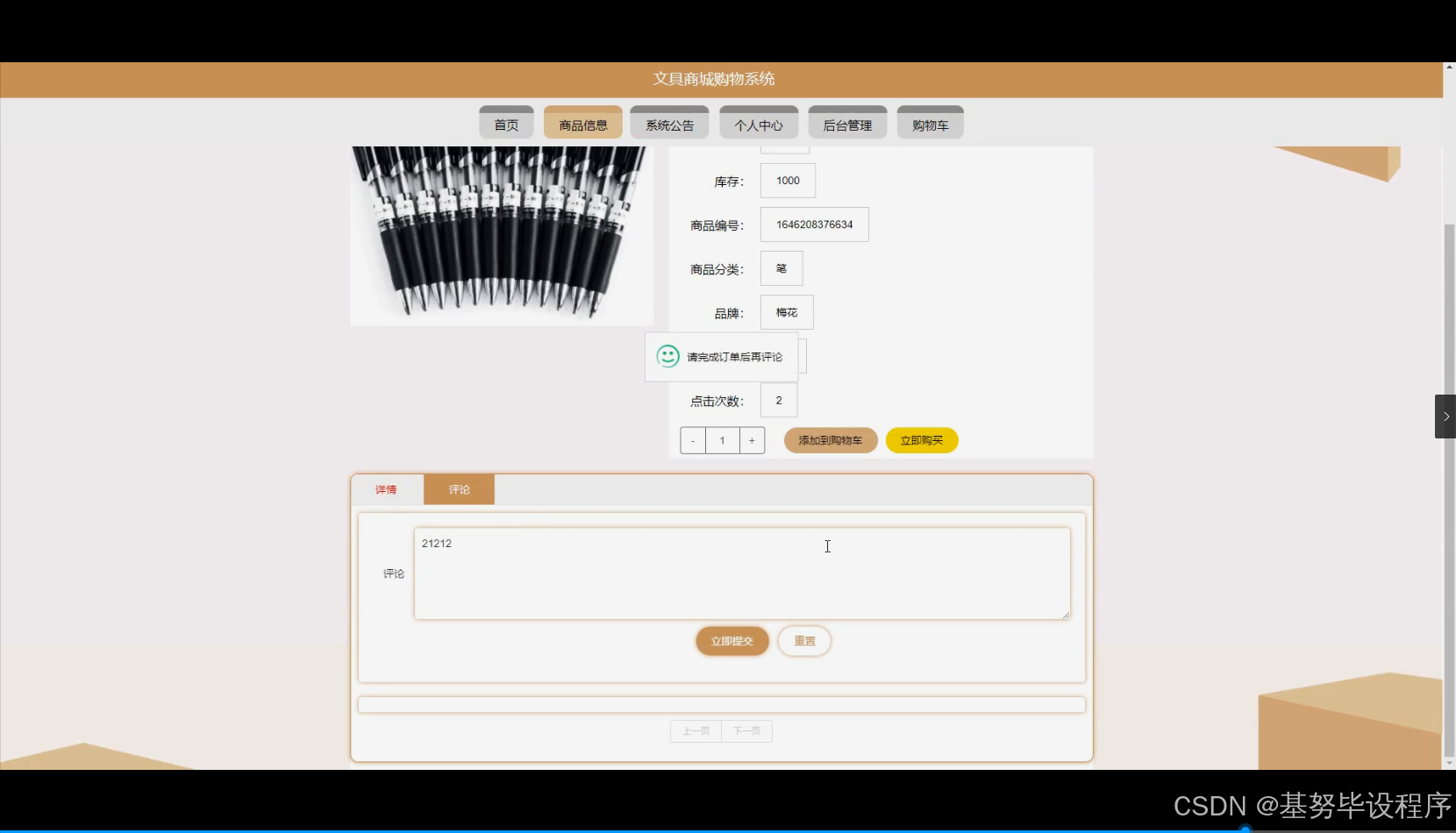 - 提升用户体验问题:从购物流程的简化、系统界面的优化等方面入手,解决当前文具商城购物系统中可能存在的用户体验不佳的问题,如购物流程繁琐、界面不友好等。
