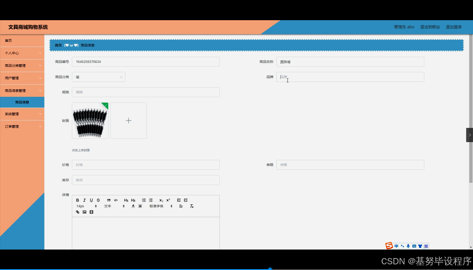 - 可运行的系统原型:开发出一个具有基本功能(如商品分类、用户管理、商品信息管理、购物流程等)的文具商城购物系统原型,可以进行模拟运行,展示系统的主要功能和操作流程。