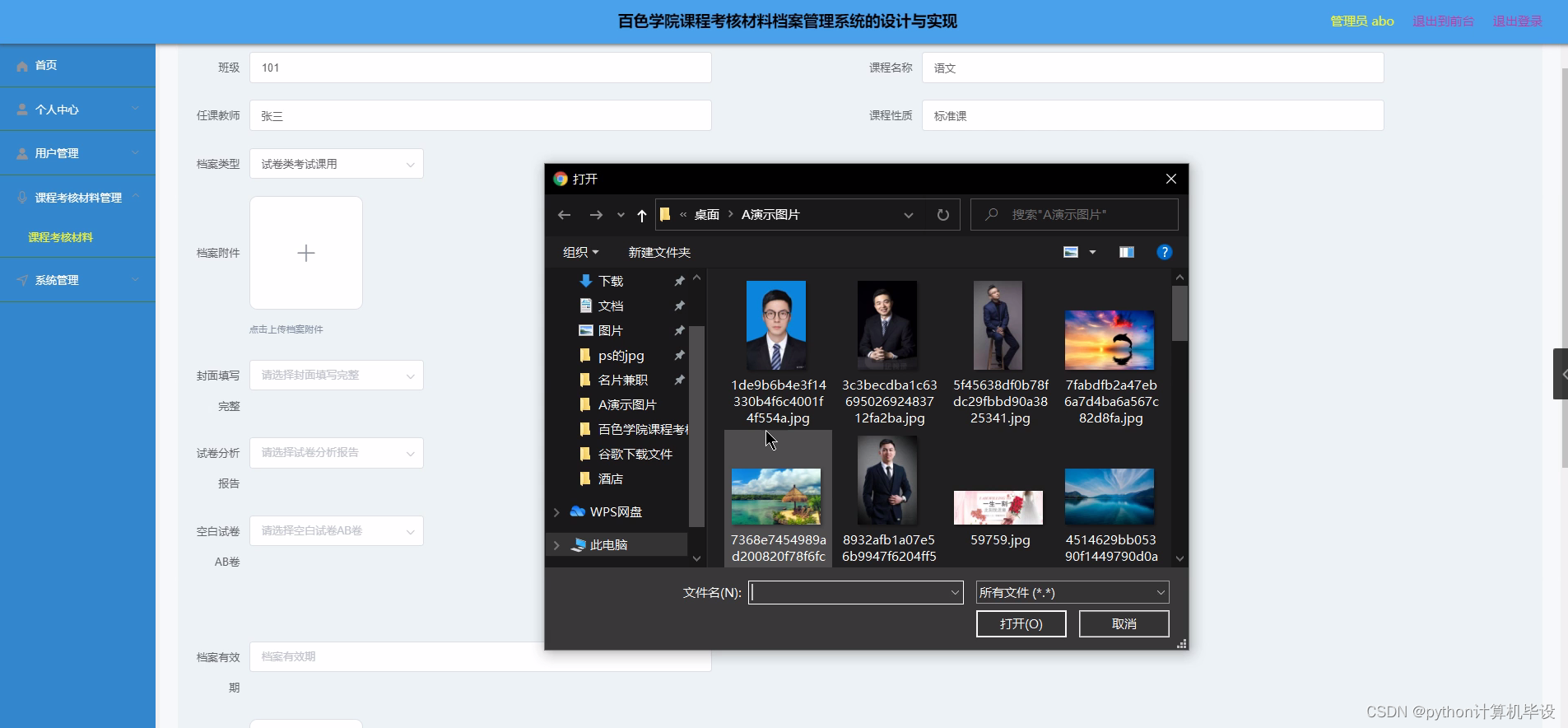 本文描述了一项关于设计和实现百色学院课程考核材料档案管理系统的项目,利用SpringBoot和Vue.js进行前后端开发,MySQL存储数据,通过分析现有问题提出改进方案,旨在提升教学质量和资源管理效率。