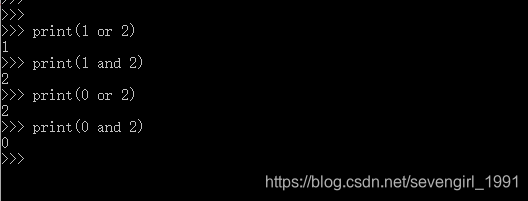 2.如果x or y:如果 x ==0,那么值为y,如果x为非0,那么值为x