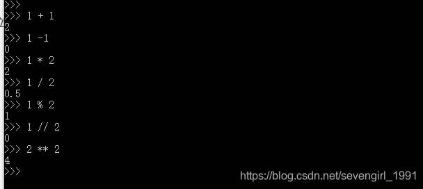 + - * / %(取余) //(取整) **(次幂)