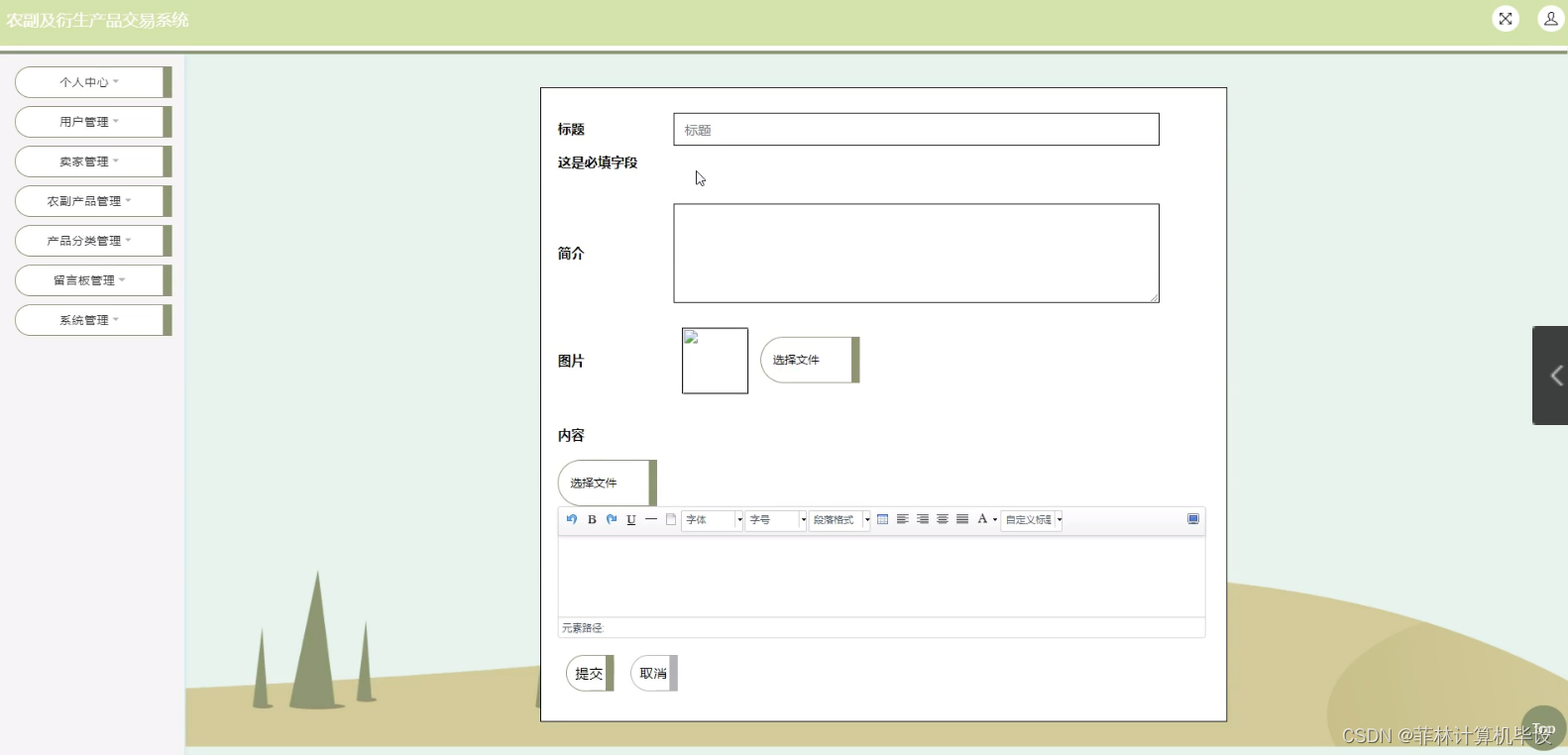 随着互联网的普及和电子商务的发展,越来越多的人选择在网上购物。农副及衍生产品交易系统作为一个电商平台,需要通过建立一个网站来吸引消费者并提供良好的购物体验。因此,农副及衍生产品交易系统的设计与实现应运而生。这种系统可以有效地提高农副及衍生产品的品牌形象和销售额,减少人为错误,提高服务质量。同时,信息技术的使用也使得系统的开发和维护变得更加简单和高效。因此,研究农副及衍生产品交易系统的设计与实现具有重要的实际意义和应用价值