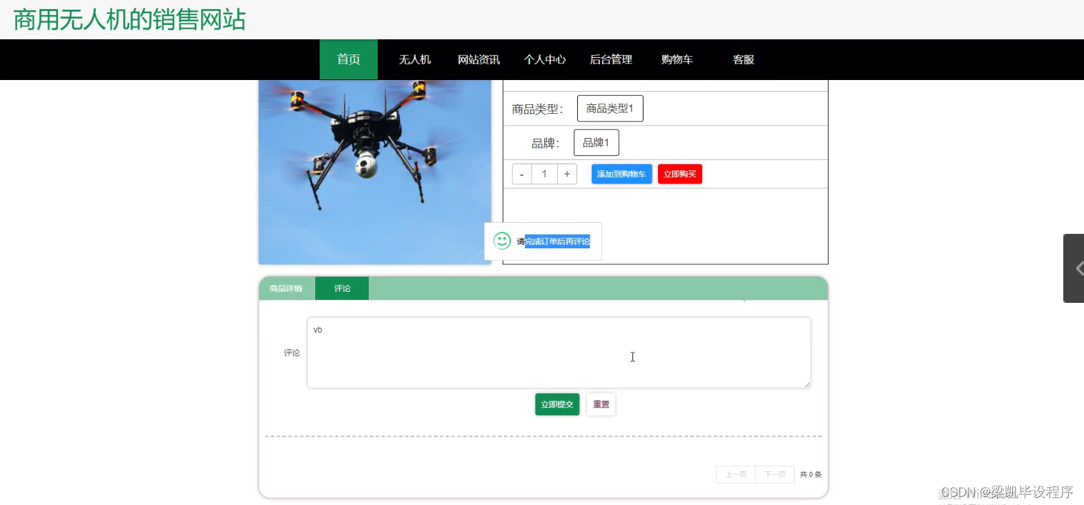 随着无人机技术的不断发展和应用领域的扩大,越来越多的企业和消费者开始关注商用无人机的销售。然而,传统的销售方式已经无法满足现代需求。因此,商用无人机销售网站应运而生。这种网站可以有效地提高商用无人机的销售和管理效率,减少人为错误,提高服务质量。同时,信息技术的使用也使得网站的开发和维护变得更加简单和高效。因此,研究商用无人机销售网站具有重要的实际意义和应用价值