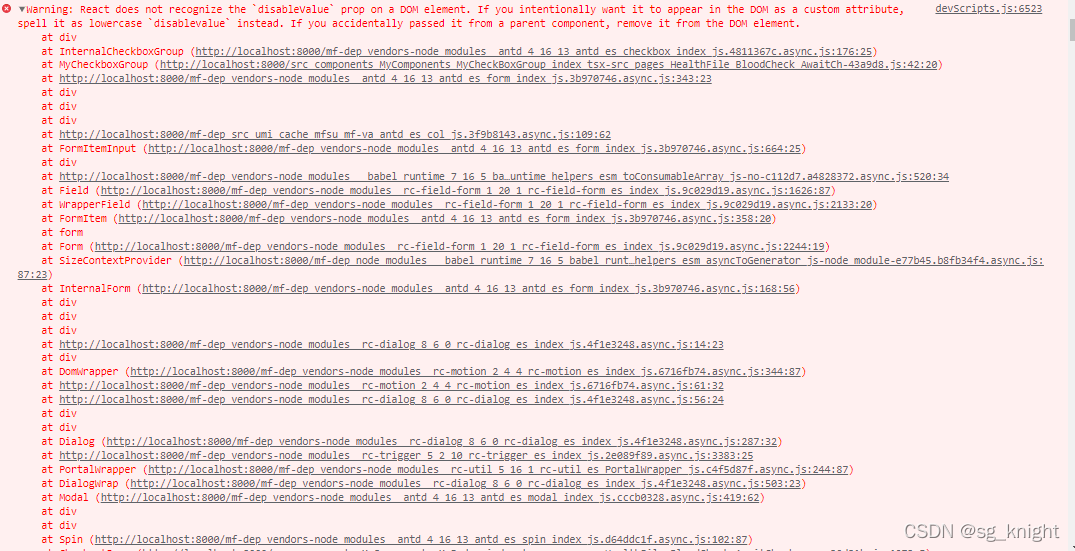 Warning: React does not recognize the `disableValue` prop on a DOM element. If you intentionally want it to appear in the DOM as a custom attribute, spell it as lowercase `disablevalue` instead. If you accidentally passed it from a parent component, remove it from the DOM element