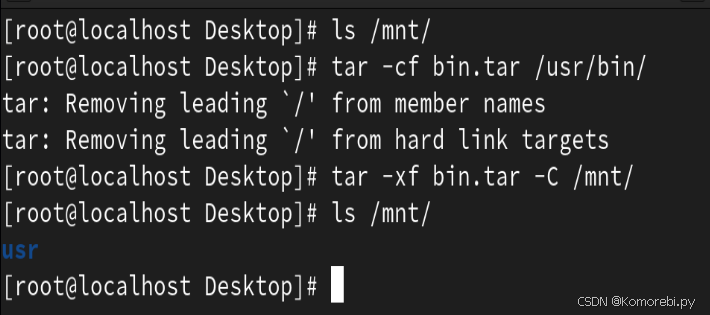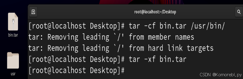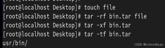 1.将/usr/bin/文件夹下的文件或目录打包到当前的bin.tar文件中,并释放该文件