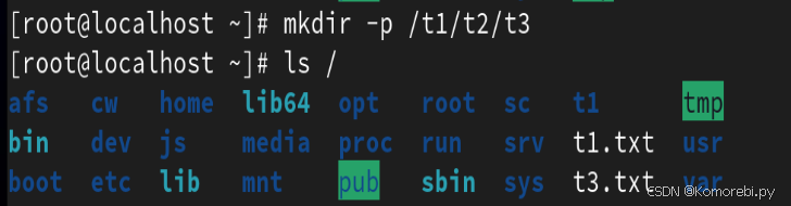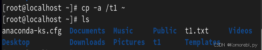 将根下的/t1复制到root目录下