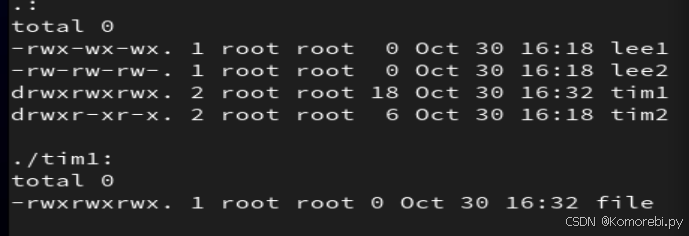 drwxr-xr-x. 2 root root 6 5月 6 18:23 dir1 # 755