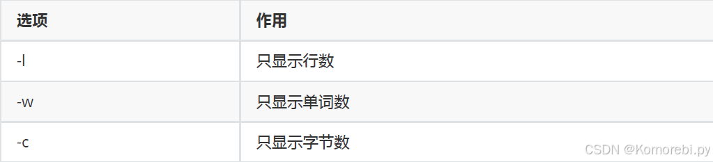 wc命令用于统计指定文本文件的行数、字数或字节数