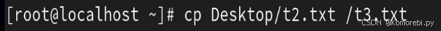 2.将Desktop下的t2.txt复制到根目录下的t3.txt(复制之前根目录下没有t3.txt,会自动创建该文件)
