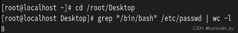 [root@server ~]# grep "/bin/bash" /etc/passwd | wc -l