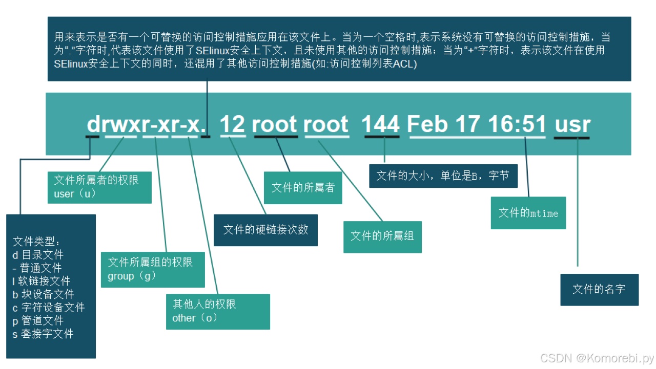 -rw-r--r--. 1 root root 0 5月 6 18:23 file1 # 644