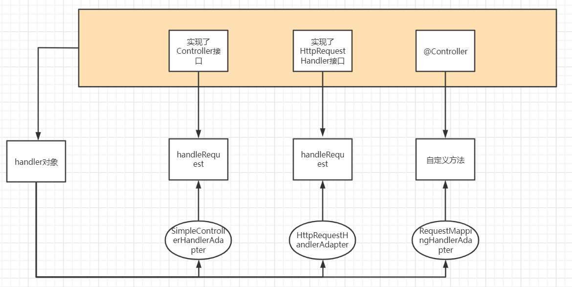 - HandlerAdapter:处理器适配器,主要包含Http请求处理器适配器,简单控制处理适配器,注解方法处理器