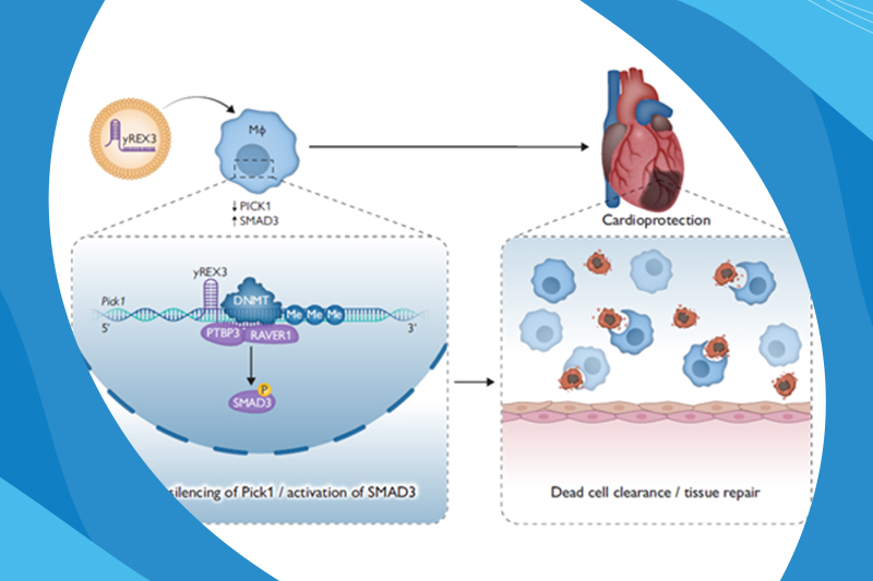 Eur Heart J (IF = 26.4)| 外泌体Y RNA通过甲基化机制发挥巨噬细胞介导的心脏保护作用 作者将暴露于yREX3的巨噬细胞、暴露于空载体的巨噬细胞和暴露于乱序yREX3的巨噬细胞分别注入心肌梗死后的大鼠体内,发现在48h后,接受yREX3暴露的巨噬细胞治疗或接受siPick1处理的巨噬细胞治疗的大鼠梗塞面积和肌钙蛋白水平明显降低(图4E、F),可以模拟心脏保护作用。因此,巨噬细胞中的Pick1抑制是yREX3介导的心脏保护的重要介导。作者发现,在巨噬细胞中发现了最大的影响,有5435个基因发生了显著的变化(图2E),且yREX3被巨噬细胞吸收后,巨噬细胞的增殖和迁移能力显著增强(图2F、G)。
