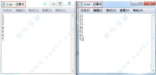 1、我们在硬盘上随便新建两个文本文件1.txt和2.txt,文本的内容如图所示。