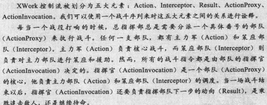 这一阶段,程序控制权交给了XWork框架,涉及XWork框架的七大元素,这七大元素构成一条生产线,完成对http请求的处理。