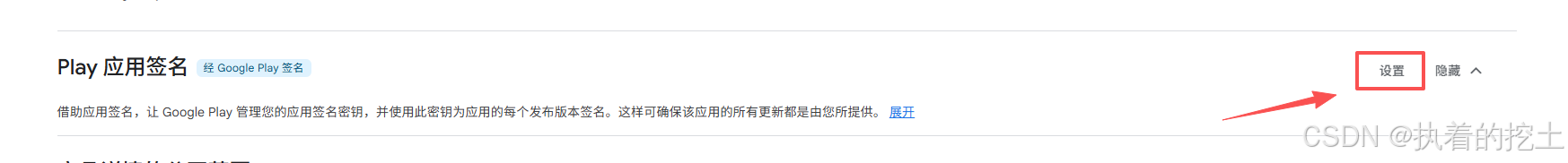 3. 展开应用完整性后上拉,找到Play应用签名-点击设置