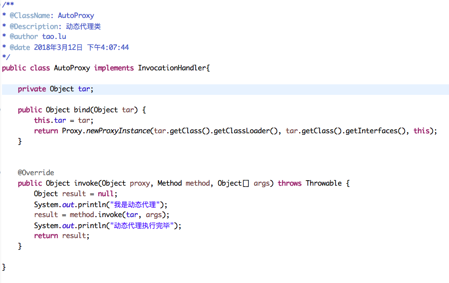 那么AutoProxy.java就是动态代理类了,具体如下所示。