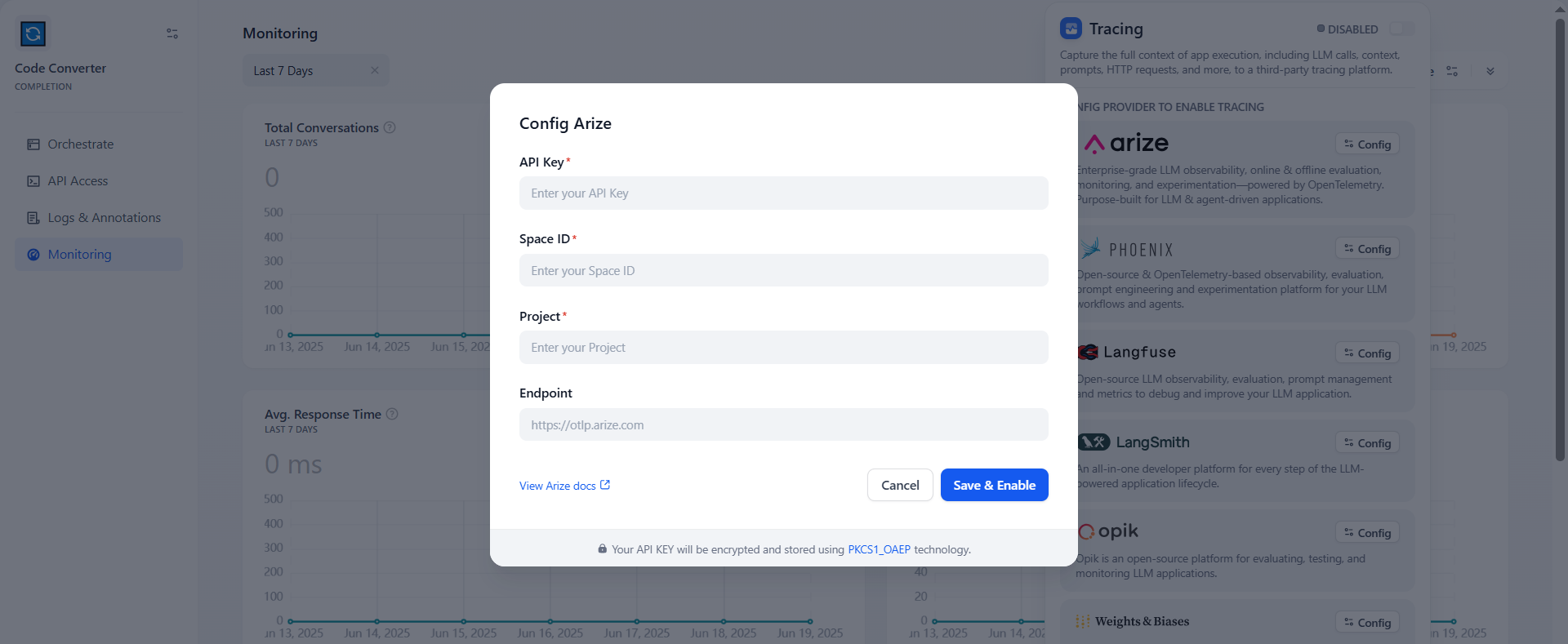 3. 集成 Arize 与 Dify