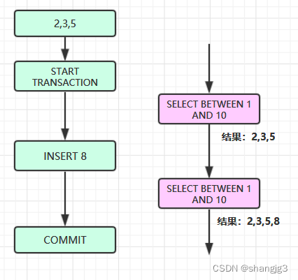 在同一个事务的两次读取之间,由于其他事务对数据进行了修改,导致第二次读取到第一次不存在数据,或第一次原本存在的数据,第二次却读取不到,就好像之前的读取是 “幻觉” 一样: