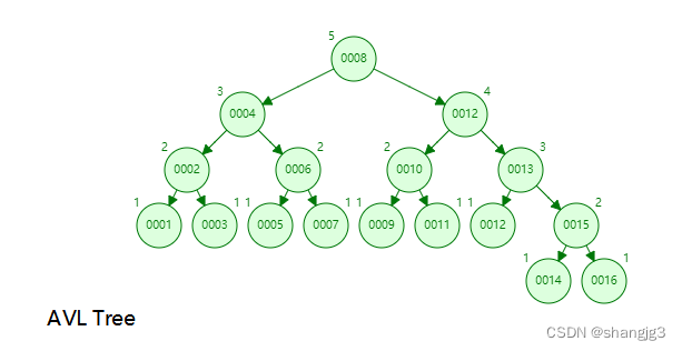 如果没有特殊说明,通常大多数数据库采用的索引都是 B+ tree 索引,它是基于 B+ tree 这种数据结构构建的。为什么采用 B+ tree 而不是平衡二叉树 (AVL) 或红黑树等数据结构?这里假设索引为 1-16 的自增数据,各类数据结构的表现如下: