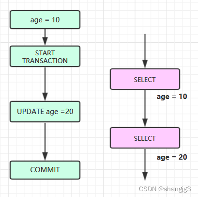 在同一个事务的两次读取之间,由于其他事务对数据进行了修改,导致对同一条数据两次读到的结果不一致: